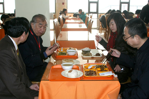 12月24日中午,教育部评估专家组组长、清华大学美术学院杨永善教授,评估专家组副组长、南京艺术学院副院长刘伟冬教授,专家组成员、中央美术学院设计学院副院长许平教授,专家组成员、四川大学艺术学院院长黄宗贤教授,专家组成员、云南大学艺术与设计学院院长李森教授,专家组秘书张勇一行在结束一上午的听课、走访、座谈之后,来到我校长清校区餐厅考察,询问食堂伙食标准和质量,了解师生在校的生活情况等,并与师生共同就餐。
