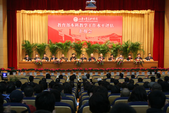 教育部高等教育教学评估中心主任刘凤泰,教育部本科教学工作水平评估专家组组长、清华大学美术学院杨永善教授,专家组副组长、南京艺术学院副院长刘伟冬教授,专家组成员、中央美术学院设计学院副院长许平教授,专家组成员、四川大学艺术学院院长黄宗贤教授,专家组成员、云南大学艺术与设计学院院长李森教授,专家组秘书、教育部评估中心张勇,专家组秘书、上海工程技术大学朱洪春,教育部高等教育教学评估中心观察员吕楠,山东省教育厅副厅长宋承祥,山东省教育厅高教处处长宋伯宁、副处长张鹏程,我校党委书记于茂阳,院长
