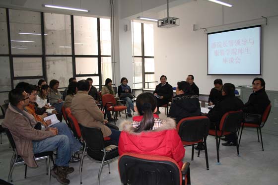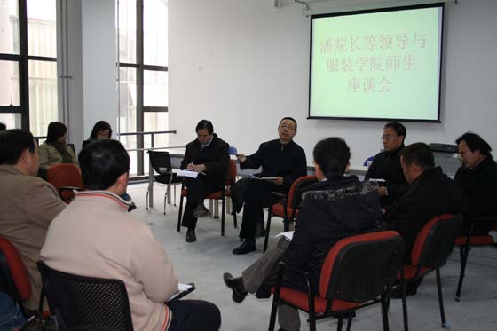 、丁炳堂、张振羽等来到服装学院,与师生代表就教学评建工作有关问题进行座谈交流。服装学院院长徐思民、党总支书记扈国珍及师生代表30余人参加座谈。