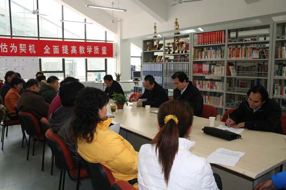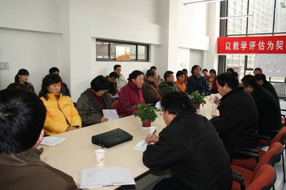首先,毕迎新主任和张琰副主任先后汇报了近期教学工作和评建工作。公共课教学部“风正气顺”,教职工牢记“校兴我荣、校衰我辱”的使命感和“评建工作,人人有责”的主人翁精神,把评建工作作为头等大事看待,以“高度重视,全力以赴,真抓实干,以评促改、以评促建、以评促管、评建结合、重在建设”为工作方针,创造性地开展工作。2006年4月至今开展的主要工作有:1、抓好评建起步阶段工作。制定《公共课教学部教学评建工作方案》,营造浓厚的评建工作氛围,召开不同层次动员大会。组织教师去南艺、天津美院、山大考察,邀请山大计算机学院专家来校指导。2、抓关键和薄弱环节,完善教学文件,抓课堂教学;抓试卷整理。3、建立健全教学质量监控体系,开展主要教学环节质量标准研究。4、将评建工作与日常教学工作有机结合。正确处理好评估与建设的关系,评估与管理的关系,评估与日常教学的关系。强化教学中心地位,形成“以学生为本、以教师为主体,以教学质量为核心”的工作理念。遵循软件从优,硬件从实的原则,加强建设。5、以评促改,改革教育理念,开展教学管理模式的研究与改革。“两课”教学切实落实上级新课程改革要求,改革英语教学,开展考试改革,改革教学方法,推广多媒体教学,开设公共选修课。6、以评促管,坚持教学督导和听课制度。开展新教师试讲、教学观摩,相互听课、青年教师教学技能竞赛。组织期中全面教学检查,严格教学纪律,规范教学文件。目前存在的问题是教学管理、教学基本建设的质量有待提高,教学改革力度不够,体育设施有待完善。