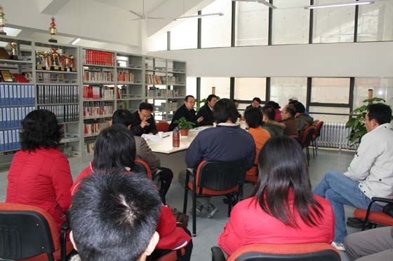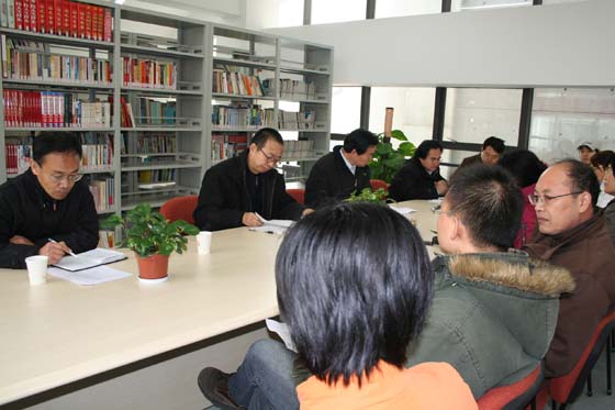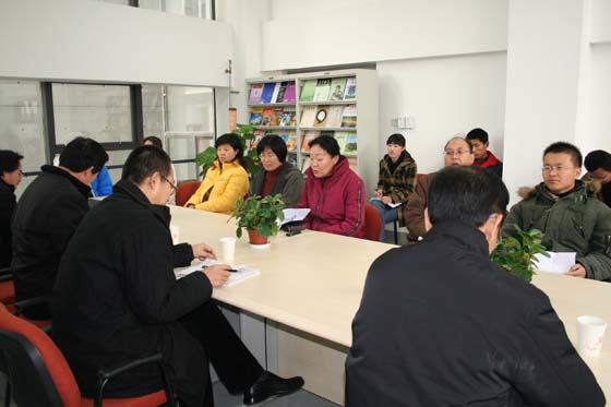 为推动我校教学评建工作的顺利进行,了解教学单位教学评建工作的进展情况、存在的困难及问题,2006年11月28日上午,潘鲁生院长、刁在祥副院长带领评建办副主任董占军、丁炳堂、张振羽及其他工作人员,到公共课教学部走访座谈。公共课教学部党总支书记、主任毕迎新、副主任张焱及教师代表参加座谈。