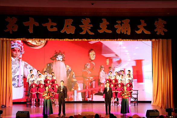 美文诵大赛是学校的校园文化品牌活动之一,比赛中各支参赛队的朗诵作品均为同学们的原创作品,对宣传爱国精神,弘扬中华传统文化,提升师生语言文字能力起到了重要作用。今年是新中国成立七十周年,五四运动一百周年,学校正深入开展“不忘初心、牢记使命”主题教育,活动的举办通过另一种形式为全体师生上了一堂生动的思政课,收到良好效果。