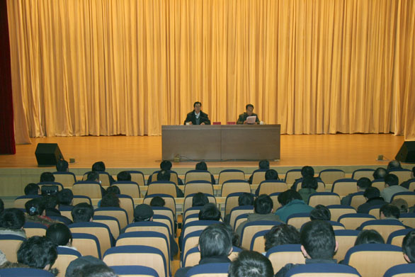 1月17日下午,教学评估整改工作会议在长清校区学术报告厅召开,副院长刁在祥主持会议,中层干部及各二级学院教研室主任、副主任参加了会议。