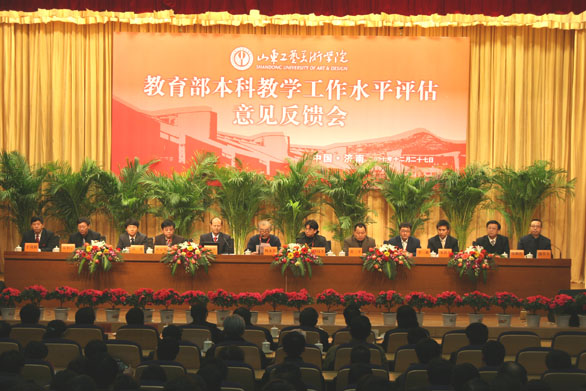 12月27日上午,我校评估专家组意见反馈会在学术报告厅举行。教育部评估专家组组长、清华大学美术学院杨永善教授,评估专家组副组长、南京艺术学院副院长刘伟冬教授,中央美术学院设计学院副院长许平教授,专家组成员、四川大学艺术学院院长黄宗贤教授,专家组成员、云南大学艺术与设计学院院长李森教授,专家组秘书张勇、朱洪春,山东省教育厅副厅长宋承祥,高教处处长宋伯宁、副处长张鹏程,我校党委书记于茂阳,院长