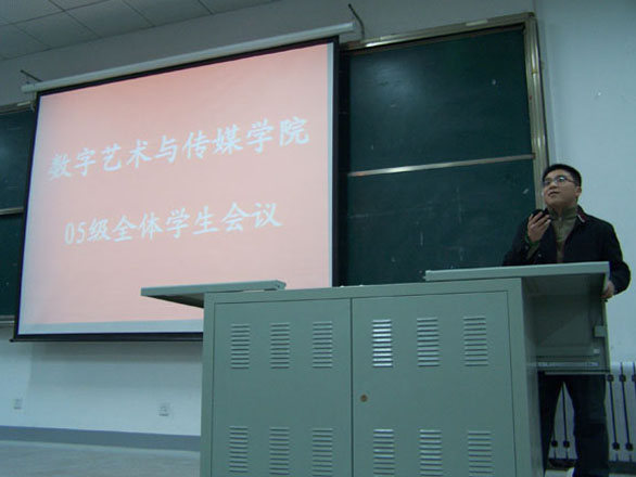 2007年1月15日晚19点,数字艺术与传媒学院在阶梯教室一分年级召开了全体学生会议。会议由数字艺术与传媒学院教学评估宣小组副组长姜维东老师主持,辅导员孙明老师及04、05、06级全体学生参加了会议。