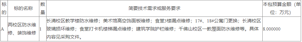 项目名称:2025新澳门免费原料大全两校区防水维修、装饰维修项目