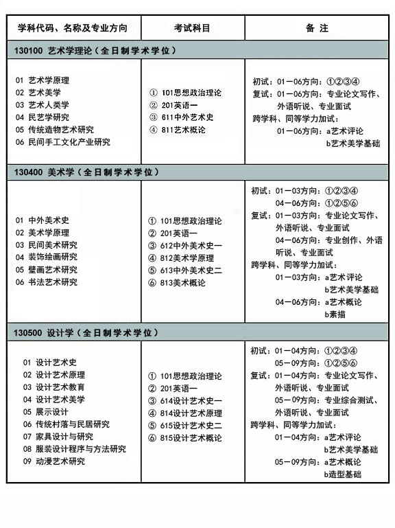 二、全日制艺术硕士专业学位研究生(MFA)招生专业目录和初试参考书目