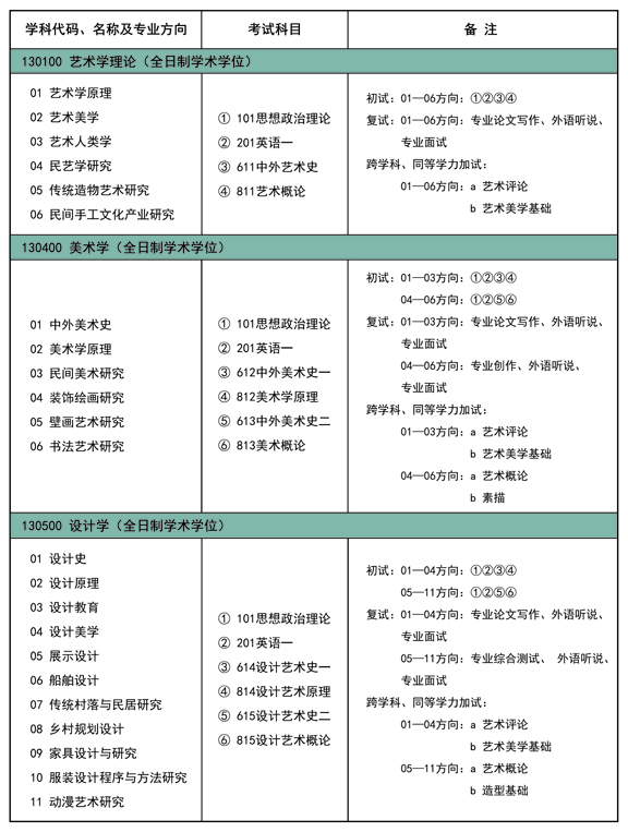 二、全日制艺术硕士专业学位研究生(MFA)招生专业目录和初试参考书目