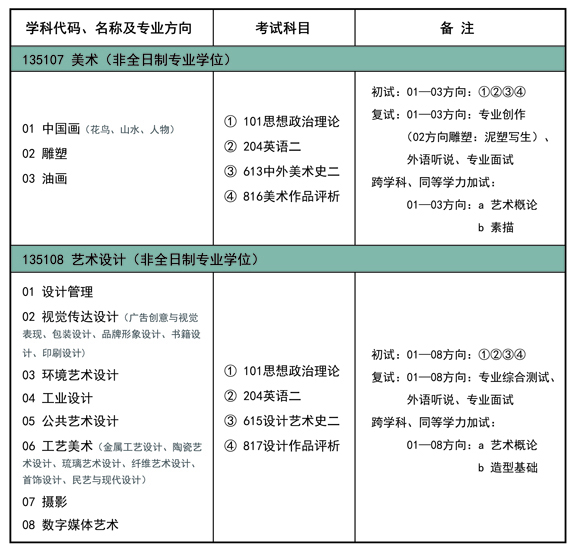 三、非全日制艺术硕士专业学位(MFA)研究生招生专业目录和初试参考书目