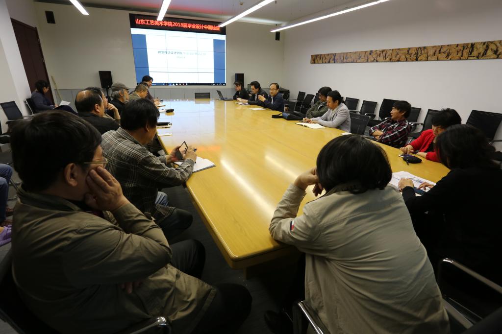 首先在教务处会议室进行了毕业设计(创作)进展情况汇报会,会议由教务处处长孙磊主持。会上部分教学单位详细介绍了本单位各专业毕业设计(创作)的展情况和毕业作品创作情况综合来看,目前各教学单位的毕业设计(创作)工作已经基本完成,处于最后的排版、模型制作和深化完善阶段。在听取汇报的基础上,评审专家从作品质量、主题导向、展览效果等方面进行了认真点评和意见反馈,并就如何促进毕业设计(创作)与市场的对接给出积极建议。