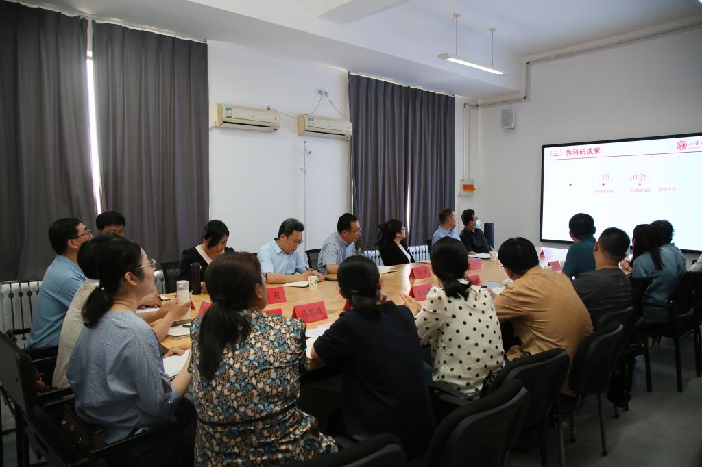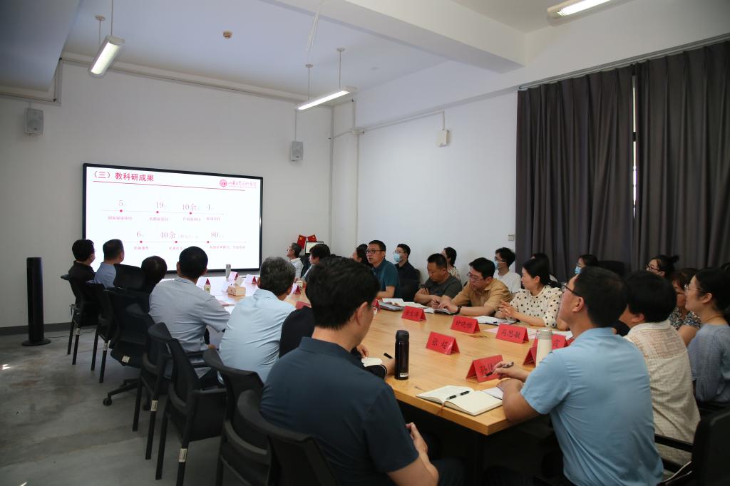 马克思主义学院院长韩文涛汇报了学院的基本概况、基层党建情况和重点工作开展情况,同时梳理了当前学院发展的制约因素和不足之处。首先,从发展历程、师资力量、教科研成果、教研室设置及课程设置等方面汇报了学院基本情况;第二,围绕落实基层党建和开展深入学习贯彻习近平新时代中国特色社会主义思想主题教育,阐述了学院在“学思想、强党性、重实践、建新功”方面的积极作为;第三,对学院2023年5项重点工作进行了详细汇报,即围绕“一条主线”,守牢“三大阵地”,加强“三个融合”,推进“一站一中心”,强化“品牌意识”;第四,就基础建设和教研能力两个方面查摆了学院现存困难和不足。