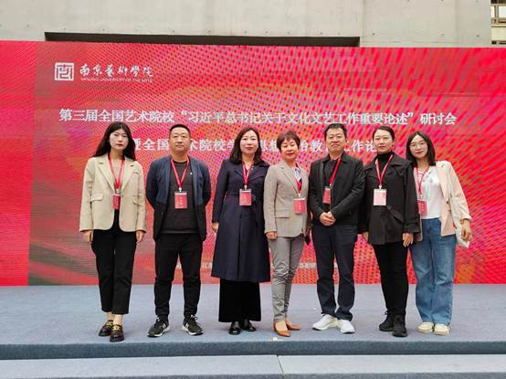 4月22日,以“坚定文化自信自强,铸就社会主义文化新辉煌”为主题的“习近平总书记关于文化文艺工作重要论述”研讨会暨全国艺术院校学生思想政治教育工作论坛在南京艺术学院成功举办,来自全国近30所艺术院校的领导、嘉宾、学者及教师代表出席会议。我院党总支副书记、副院长张晓宁,教授牛序茜,副教授梁维科、钟晓雅,以及青年教师曹宁、袁佳佳应邀参会。