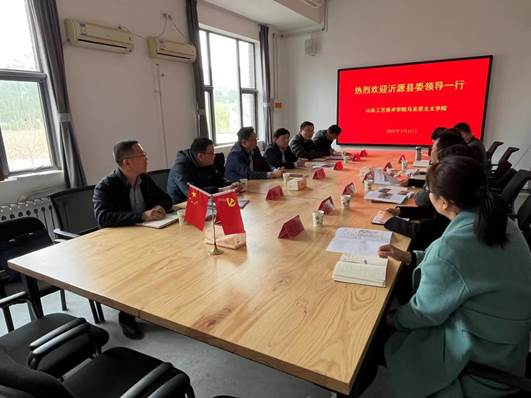 3月24日,沂源县委常委张文,淄博市618电台党支部书记刘刚、副台长段新庆,沂源县委组织部选派办主任刘克伟等一行来院走访洽谈。党委宣传部副部长石龙潭、马克思主义学院副书记副院长张晓宁、选派挂职教师孙传辉及各教研室主任与来宾一起进行了座谈交流。