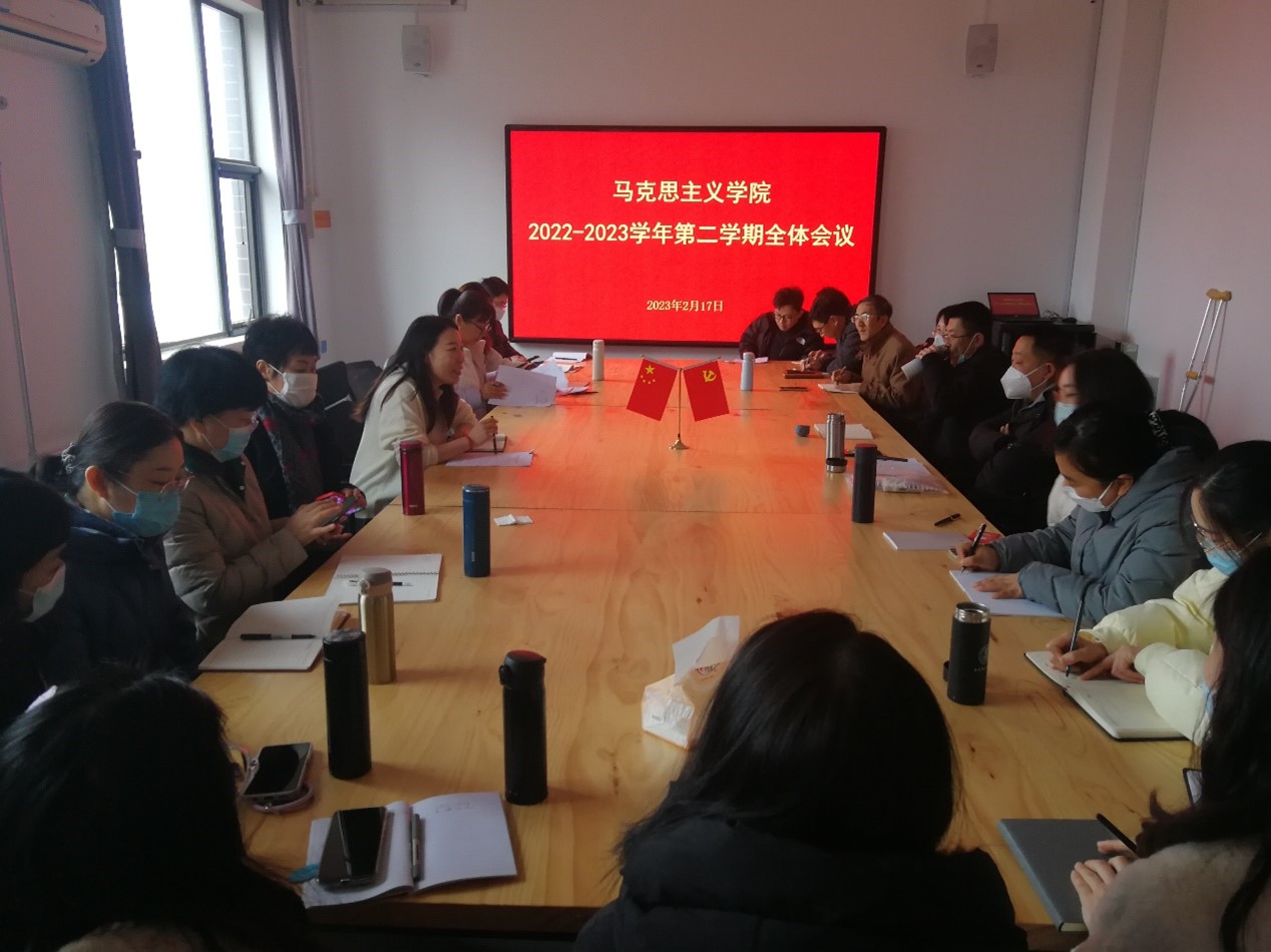 2023年2月17日上午,马克思主义学院组织召开2022-2023学年第二学期全体教职工会议。党委委员、宣传部长、马克思主义学院院长韩文涛出席会议,会议由副书记副院长张晓宁主持。