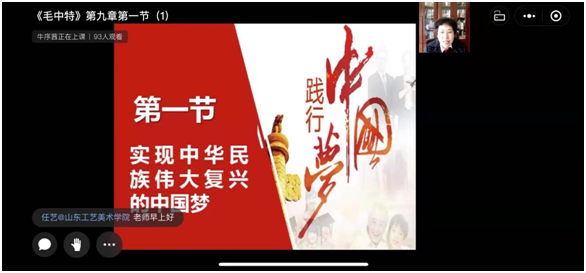 从督导的情况来看,各位任课教师针对线上教学工作付出了很多心血。在课程内容上,能够顺利与线下教学进度相衔接,保证学生接受理论知识和思想教育的连贯性;马克思主义学院作为学校思政育人的前沿阵地,将“思政小课堂”与“社会大课堂”结合起来,将鲜活的抗疫事例与学校的抗击疫情主题创作结合起来,通过讲述身边师生的志愿服务等故事,上好每一堂有“温度”的疫情防控思政课,正确引导学生的思想和行为,在理论与实践相统一中展现“大思政课”的亲和力和针对性,教育引导学生自觉担当民族复兴的时代大任。在课堂管理上,能够熟悉多种在线课程平台和教学辅助平台,结合思政课的特点,灵活选用“雨课堂”、腾讯会议、企业微信、学习通等平台,形成了集授课、考勤、互动于一体的在线教学方式。