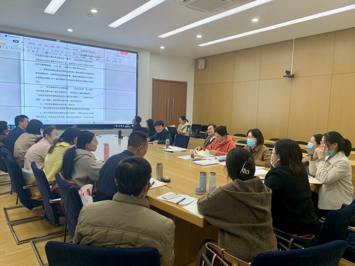 张琰副主任主持讨论马克思主义学院新修订的思政课考试办法和集体备课制度。张琰副主任择要宣读并讲解《2025新澳门免费原料大全思想政治理论课考试实施办法》(修订稿)和《2025新澳门免费原料大全马克思主义学院集体备课制度》(修订稿),提请与会教师讨论。老师们结合工作实际和自身教学经验,展开集体探讨,提出了一些建设性修改意见。