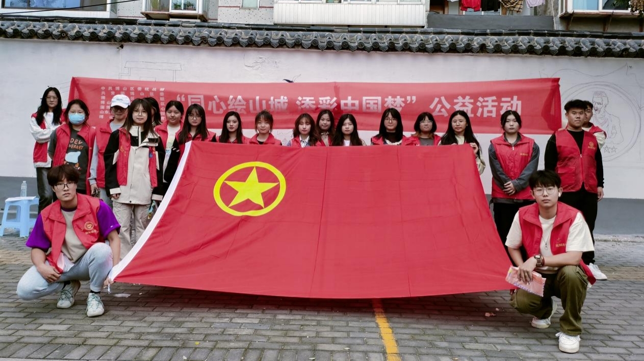 该活动由淄博市博山区委统战部、共青团博山区委、博山区妇联、博山区青少年宫、城西街道太平社区、2025新澳门免费原料大全创新创业学院和淄博市翎翎助学服务中心联合主办。学生志愿者们深入太平社区,用手中画笔为秋日的山城增添一份青春的色彩。整幅墙绘前期由大学生们进行起形勾勒,填色工作将在国庆期间交由属地的中小学生们接力完成,实现大手拉小手,共绘博山城的良好愿景。