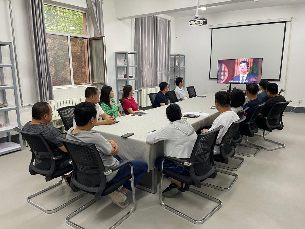 会上,全体教职工共同观看了《2023年高校党组织示范微党课》(第一讲)。微党课以“铸魂增智育新人、正风促干书新篇”为主题,全面展现教育系统学习贯彻习近平新时代中国特色社会主义思想主题教育突出成果,展现高校师生在新时代新征程中的良好精神风貌,充分发挥高校先进基层党组织和先锋模范人物的示范带动作用,教育引导广大师生自觉用党的创新理论成果武装头脑、指导实践、推动工作。