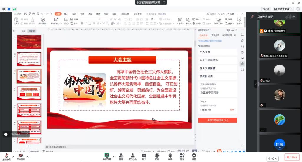 讲座中,解老师从党的二十大的主题,过去5年的工作和新时代10年的伟大变革,马克思主义中国化时代化,新时代新征程中国共产党的使命任务,坚持全面从严治党等方面,对党的二十大精神进行了详细阐释和解读。讲座认为,过去5年和新时代10年党和国家取得了历史性成就、发生了历史性变革。党的二十大报告科学谋划未来5年乃至更长时期党和国家事业发展的目标任务,提出了一系列新战略、新思路、新论断,是指导我们全面建设社会主义现代化国家、向第二个百年奋斗目标奋进的行动纲领。