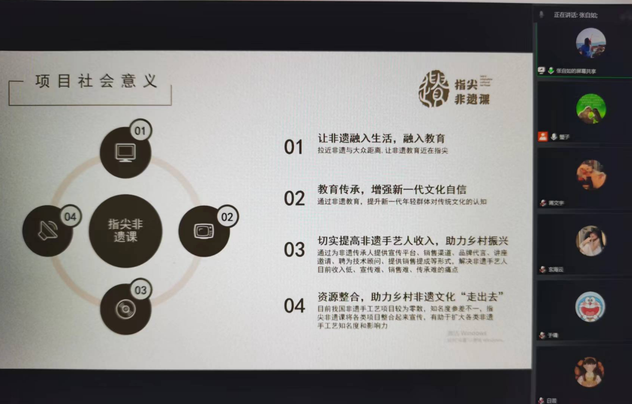 活动通过腾讯会议线上展开,“鲁绣未央”——山东手造“鲁绣”创新发展的践行者等校赛前9名项目团队负责人依次进行了项目路演,分享了项目方案,解恒岩老师对每个项目进行了逐个点评,提出修改意见,从项目背景分析、产品服务功能、市场分析定位、项目商业价值、创业团队结构等方面展开辅导交流,指导项目团队梳理思路、理清逻辑,突出项目的特色和优势,提升项目的竞争力。