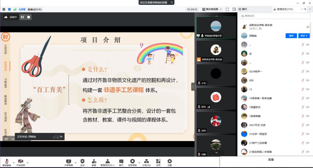 5月3日晚,教务处、学生处、团委、创新创业学院联合组织的创新创业教育系列讲座之三《“专创融合”视角下创新创业实践项目的策划与实施》以线上方式举办。讲座由山东艺术学院副教授郑晓迪主讲,学校师生共同观看讲座。