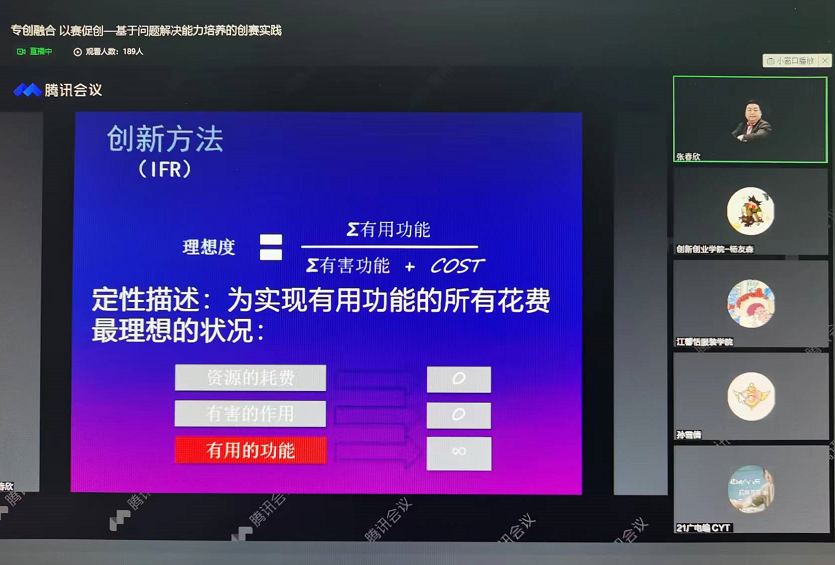 为提高学生创新创业意识,营造良好的创新创业氛围,鼓励支持我校师生参与到创新创业工作中来,教务处、学生处、团委、创新创业学院联合组织创新创业教育系列讲座。2022年4月28日晚,系列讲座之一《基于问题解决能力培养的创赛实践》以线上方式举办。讲座邀请到中国火炬导师、中国科技金融促进会创新创业教育工作委员会秘书长张春欣老师主讲,学校师生共同观看了讲座。