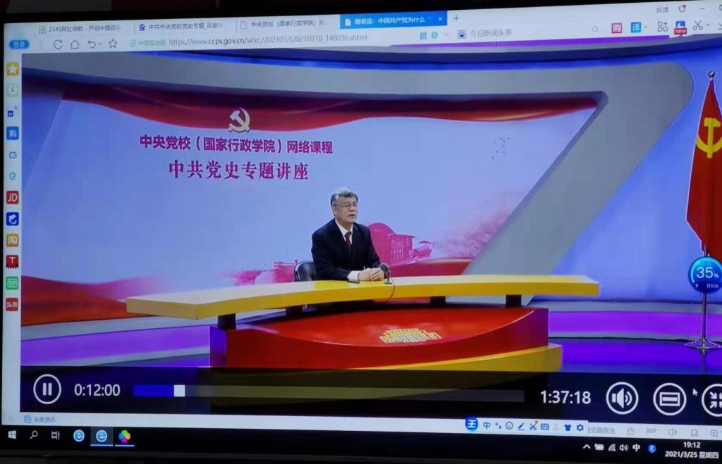 3月25日晚,创新创业学院(淄博陶瓷学院)党总支充分利用网络资源,采取线上形式组织师生学习观看党史学习教育专题讲座——“中国共产党为什么能”。讲座由中央党校(国家行政学院)副校(院)长谢春涛教授主讲。