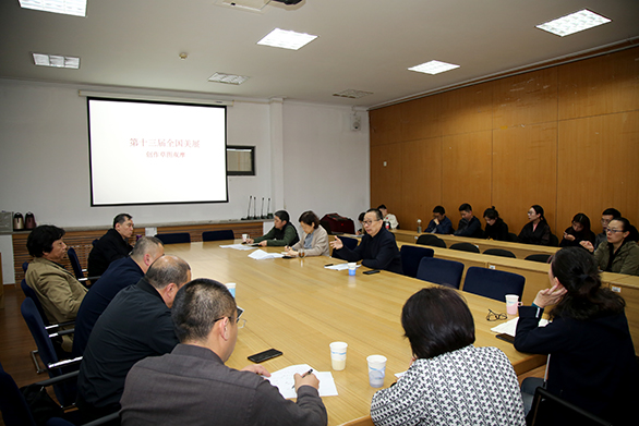 4月22日,学校在长清校区组织召开第十三届全国美展创作草图观摩会。院长潘鲁生、副院长李新出席会议。