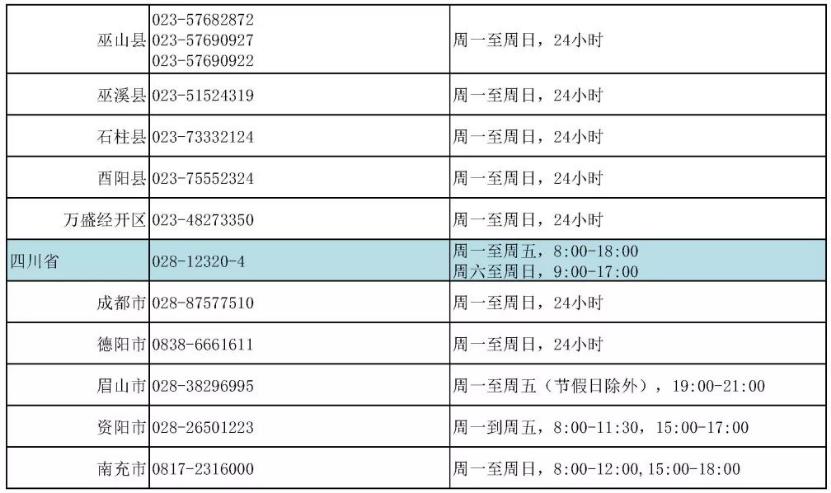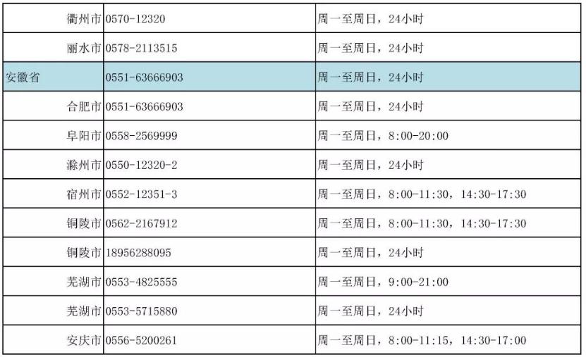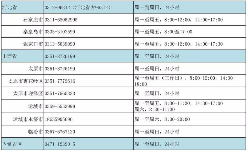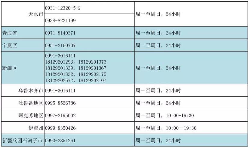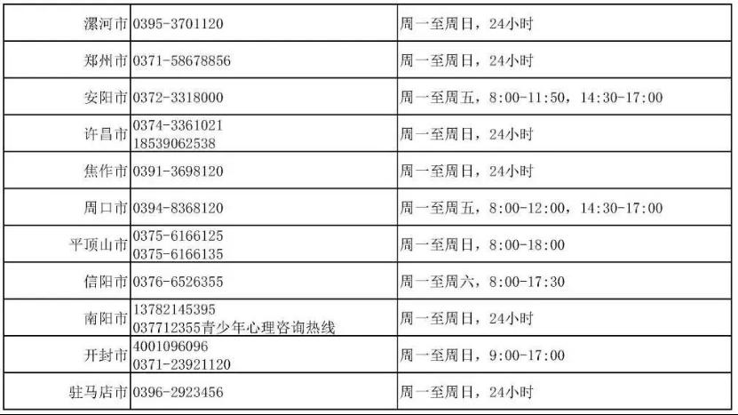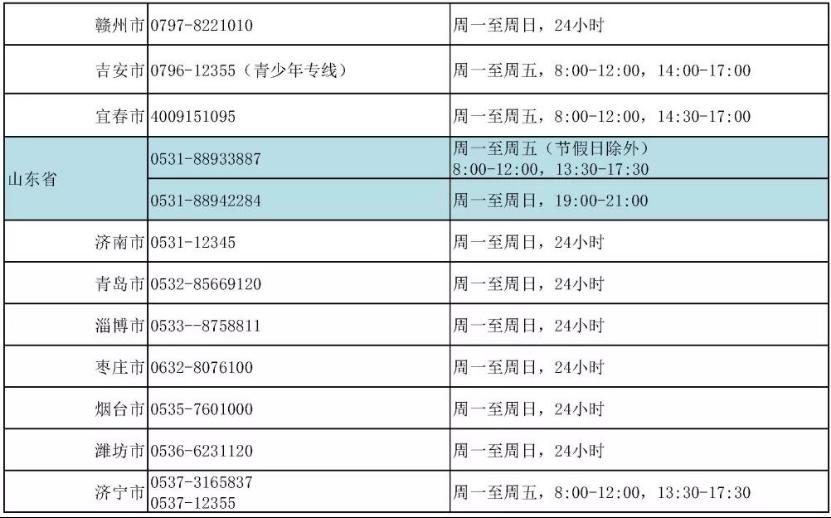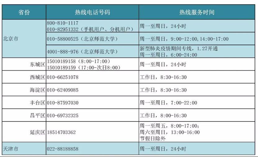 同时,全校师生也可拨打下表中各省心理热线求助: