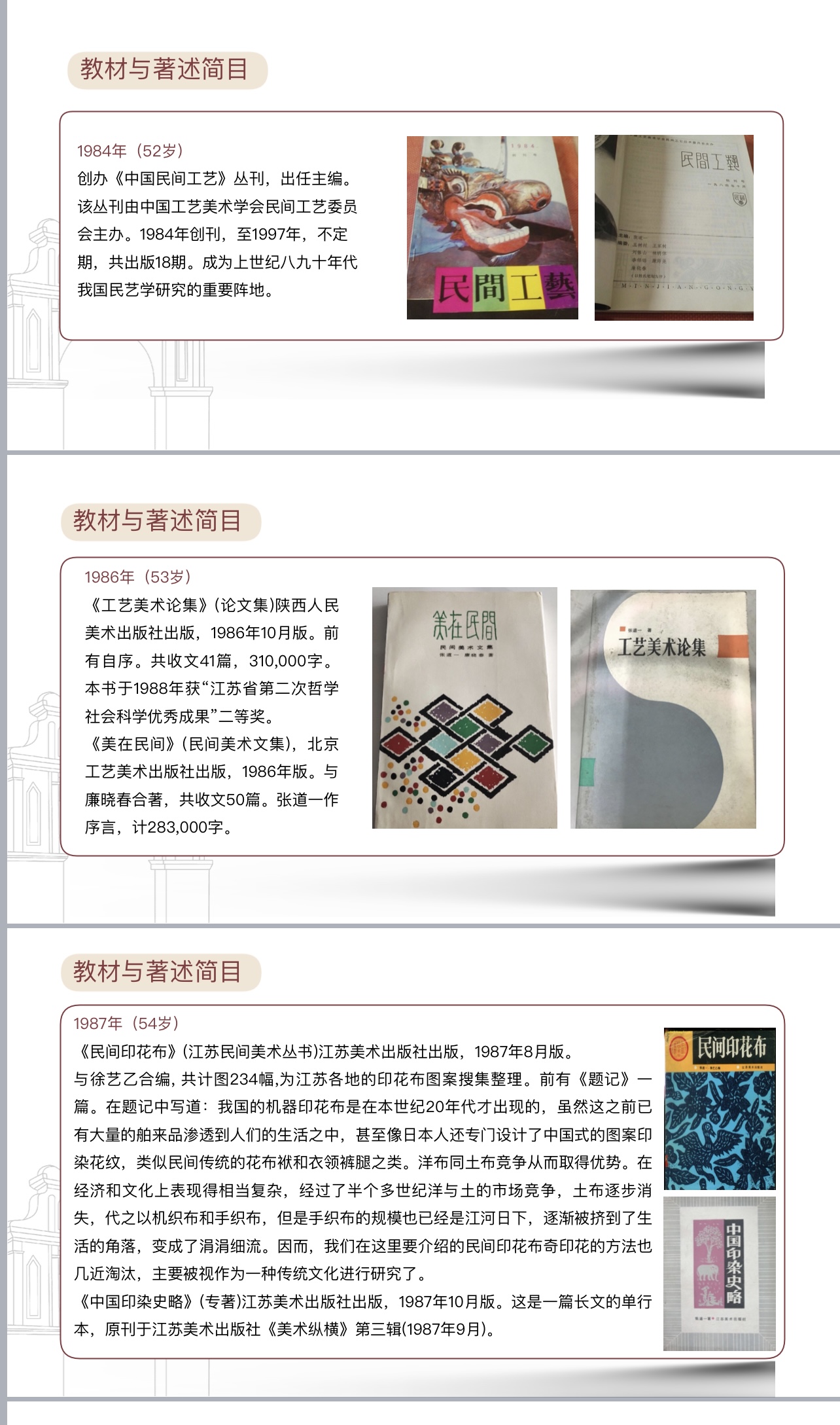 再一点,就是在上世纪80年代初中期,张先生便开始做民间艺术的调查考察,这在当时是很独到的,且不容易实践的工作。因为大家的眼光都投向西方,都向外来的时尚艺术和设计的“三大构成”靠拢,图案教学不讲“写生变化”、不学基本组织法则,更少涉及纹样造型规律分析,甚至关于中国图案的意境话题、中国图案中的“经营位置”也都不讲。但张先生坚持把目光投入民族民间,去做民艺调查。其实,这一探索艺术的思路在今天看来非常“前卫”,你看这个思路就是典型的“非遗传承与保护”研究,直到90年代末,我们国家才开始接受联合国教科文组织推出的非遗文化保护概念,我们才开始在全国范围内注重自己的民族民间传统文化与艺术。但张老师在改革开放初期,上世纪八十年代初中期就开始提倡和注重研究了,那会儿有些东西还能寻觅的到,还有保留的可能性。如此看来。张先生办民艺馆,包括他创办的《中国民间工艺》丛刊,共计出了17卷。应该讲,都是很好的研究范式或范型。幸亏张先生在上世纪八九十年代做过民艺资料谱系的完整调查和收集,因为之后很多东西都已经散失掉了,收集资料变得相当困难。所以在这一点上,我觉得都可以归为张先生的学术旨趣,或者说是他从艺术实践出发凝聚而出的艺术研究的丰富认识与观念,依此而不间断地做出艺术学一系列的理论探究。