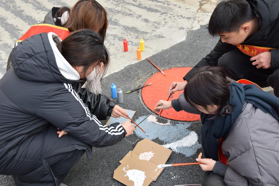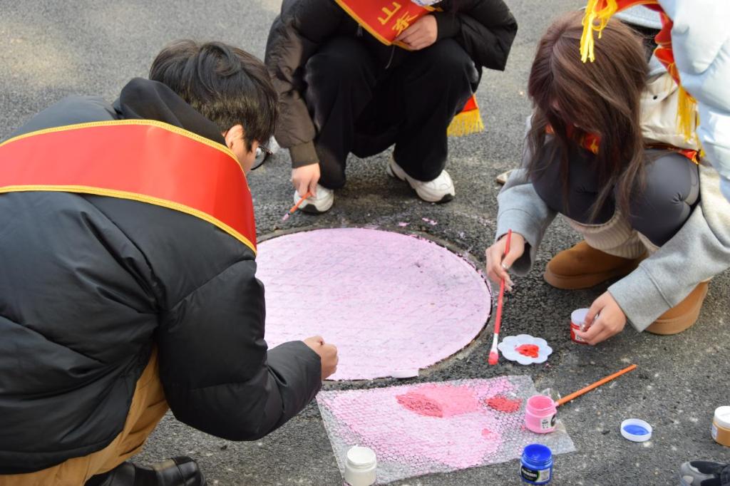 为加强学生的美育教育,增强环保意识,为校园环境增添一抹亮色。11月25日上午,基础教学部团总支组织青年团员在千佛山校区开展井盖作画实践活动。此次活动旨在利用井盖的凹凸效果和纹理,进行创意、上色、钩边,为校园内的井盖设计出别具一格的图案。