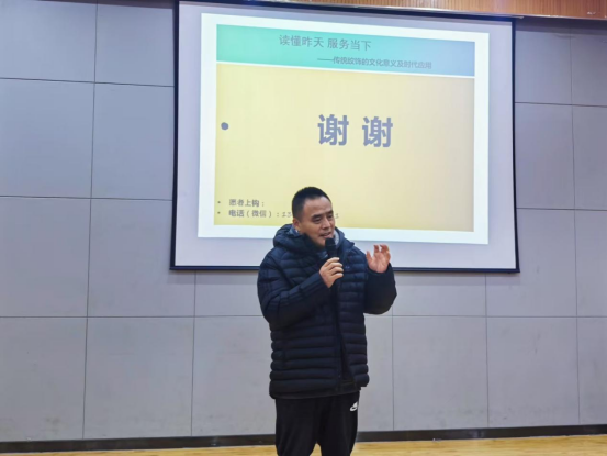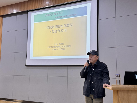 11月20日下午,基础教学部在千佛山校区阶梯教室举办“通观”学术讲座。山东工艺美院人文艺术学院教授、硕士研究生导师,曾任中国工艺美术学会理论委员会副秘书长,山东工艺美术学会理论委员会主任委员;民盟山东省委第九届委员会委员,济南市政协第十三届常务委员会委员徐思民以《传统纹饰的文化意义及时代应用》为题作专题报告,基础教学部全体学生认真聆听了讲座。基础教学部主任谢其云主持。