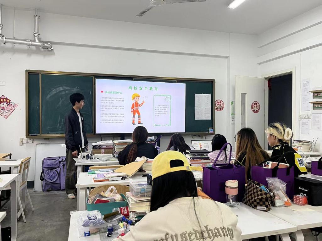 随后,各班级对同学们提出了明确要求,对于计划出行的同学,必须严格遵守交通规则,并尊重、遵守公共场所的各项规章制度,以确保自身及他人的安全。对于选择假期留校的同学,严格遵守校规校纪,以维护学校的正常秩序和安全。