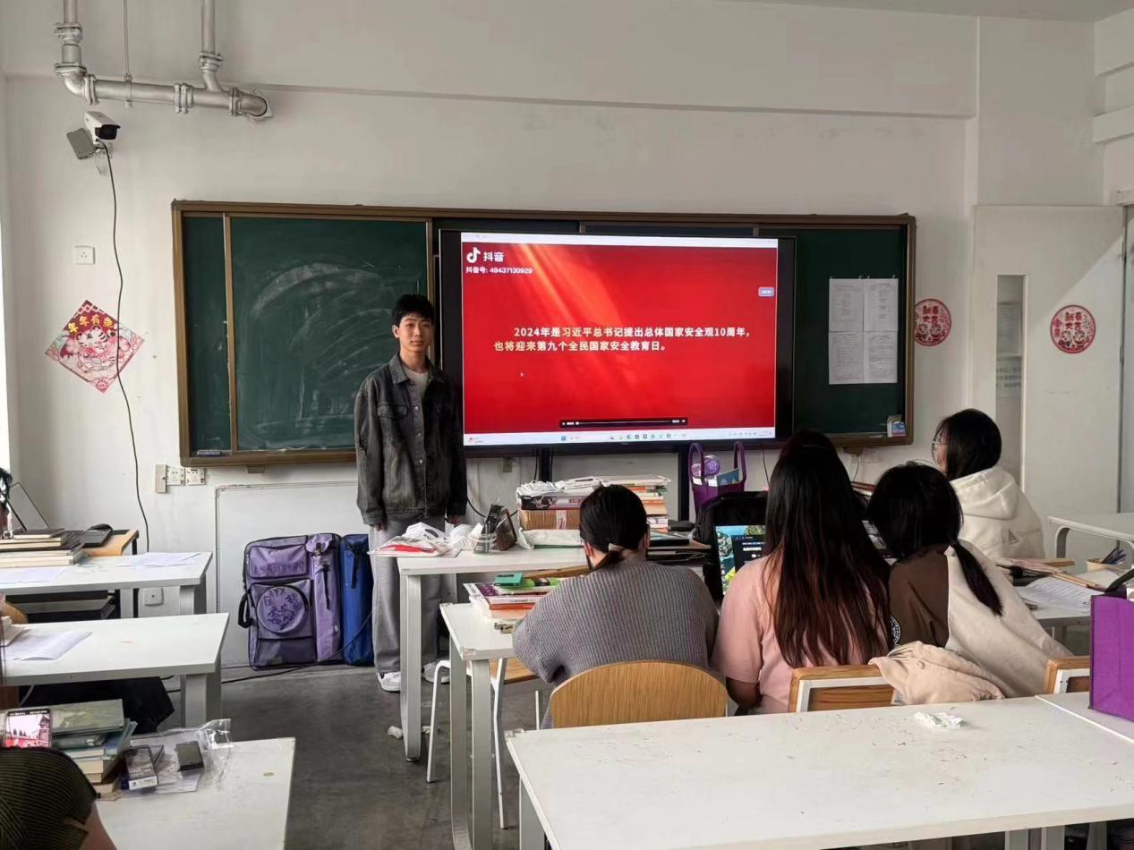 在活动中,各班团支书带领本班同学观看了有关“总体国家安全观”的视频,结合视频为同学们讲解了国家安全的重要性以及如何防范和应对各种安全威胁。通过生动的案例讲解,学生们深入了解了国家安全相关知识,增强自身的国家安全意识。