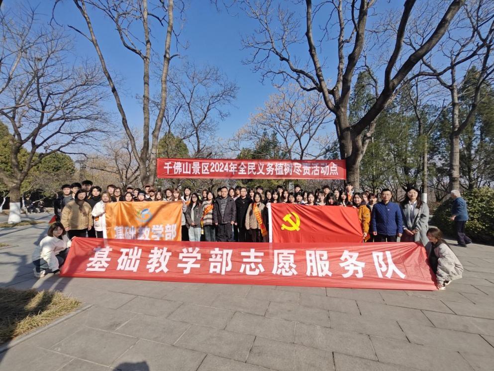 为了引领广大青年学子牢固树立和践行绿水青山就是金山银山的理念,鼓励他们积极投身志愿服务活动深入自然、感悟自然之美,同时培养其对花草树木的保护意识,在3月12日即我国第46个植树节当天,由基础教学部主任谢其云、基础教学部党委直属党支部书记李忠诚以及全体教职工共同带领学生们前往千佛山公园,积极参与义务植树活动。