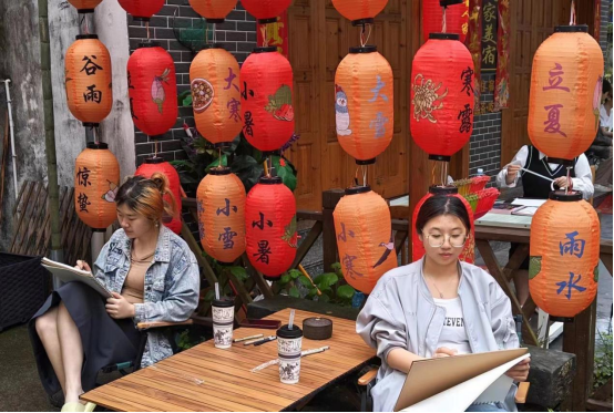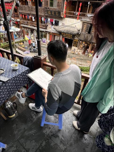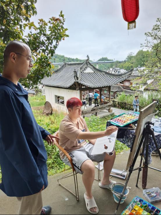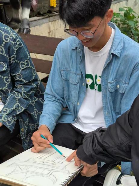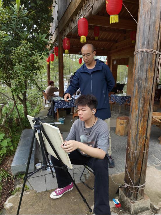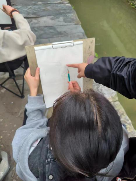 指导老师时刻关注同学们的写生过程,耐心细致地进行画面讲解。