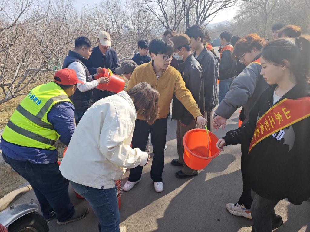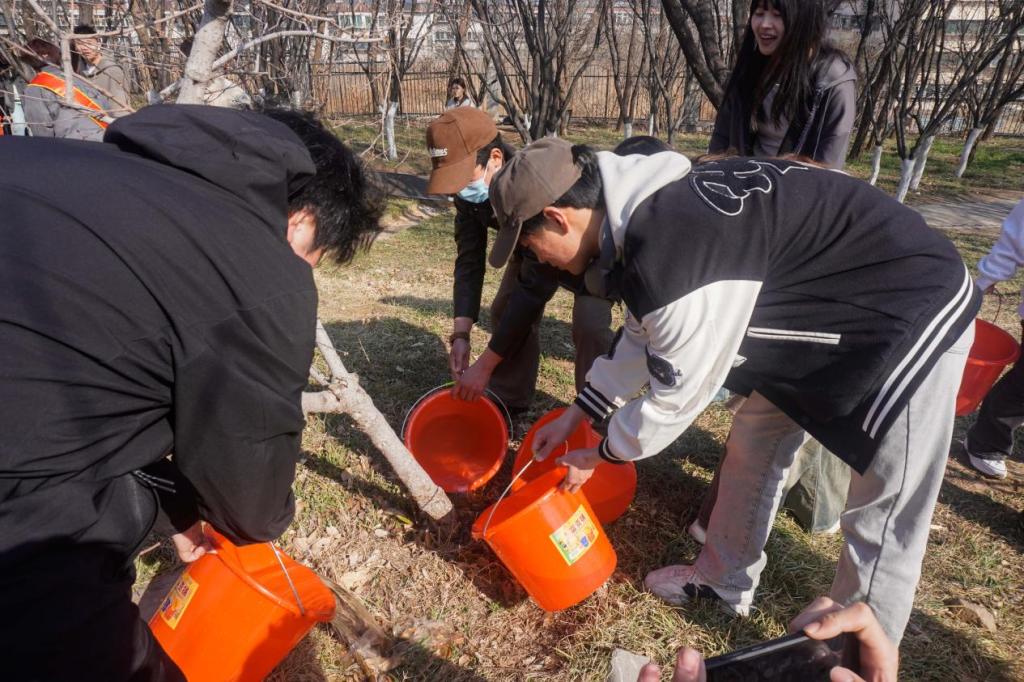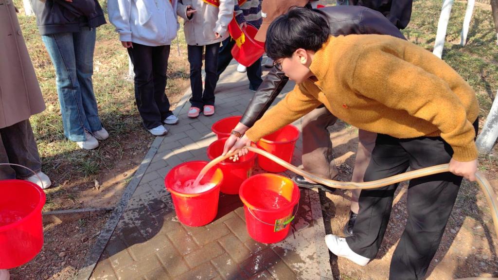 在工作人员的专业指导下,志愿者们以满腔热忱投身于植树活动中。他们各司其职、协同合作、精力充沛,部分人执锹挖土,部分人扶树培土,还有部分人负责浇水灌溉。每个人都致力于赋予这片土地新的生命力。在和谐愉快的氛围中,大家齐心协力为树木浇灌水分,为绿化事业奉献了自己的绵薄之力。