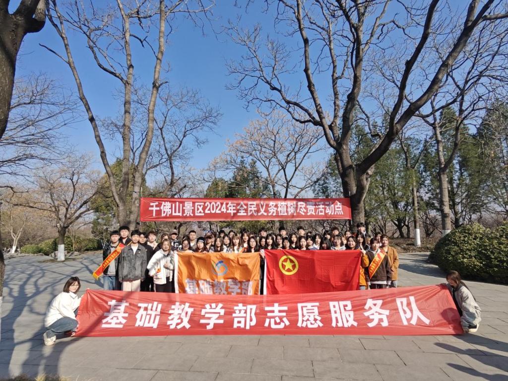 在春意盎然、万物复苏的美好时节,为了引领广大青年学子牢固树立和践行绿水青山就是金山银山的理念,鼓励他们积极投身志愿服务活动深入自然、感悟自然之美,同时培养其对花草树木的保护意识,在3月12日即我国第46个植树节当天,由基础教学部主任谢其云、基础教学部党委直属党支部书记李忠诚以及全体教职工共同带领学生们前往千佛山公园,积极参与义务植树活动。