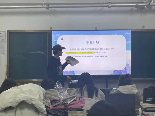 班会重点强调了假期安全注意事项,旨在提醒学生在享受假期的同时,充分重视自身安全。各班级首先对寒假期间可能遇到的安全问题进行了罗列和讲解,包括出行安全、饮食健康、防火防骗、心理健康常识、假期科学规划等。其次,结合近年来发生在大学生身上的典型案例,强调了安全意识的重要性,提醒同学们时刻保持警惕,防止各类安全事故的发生。