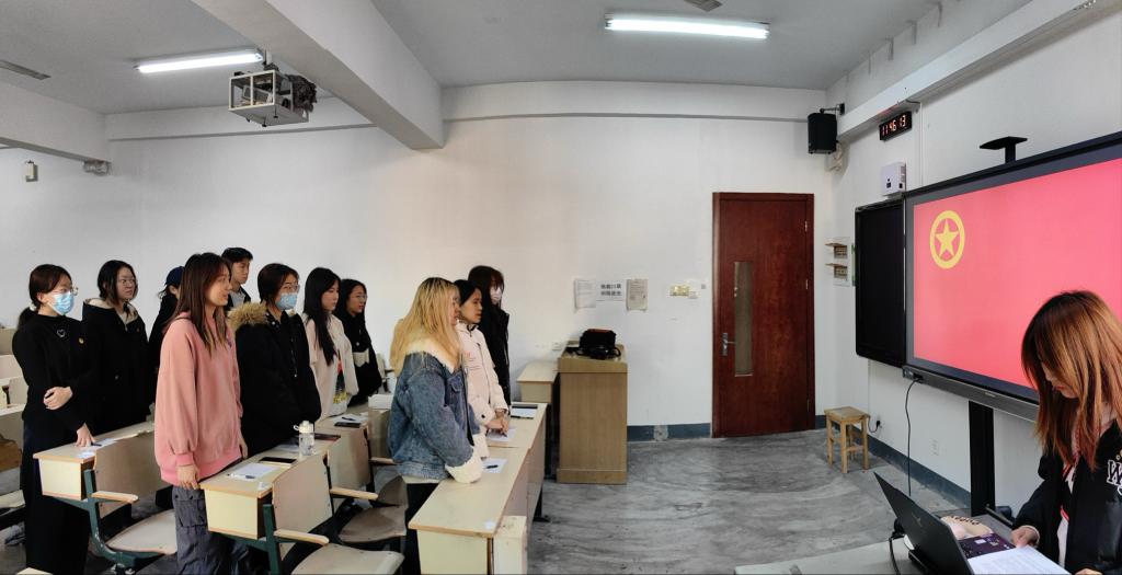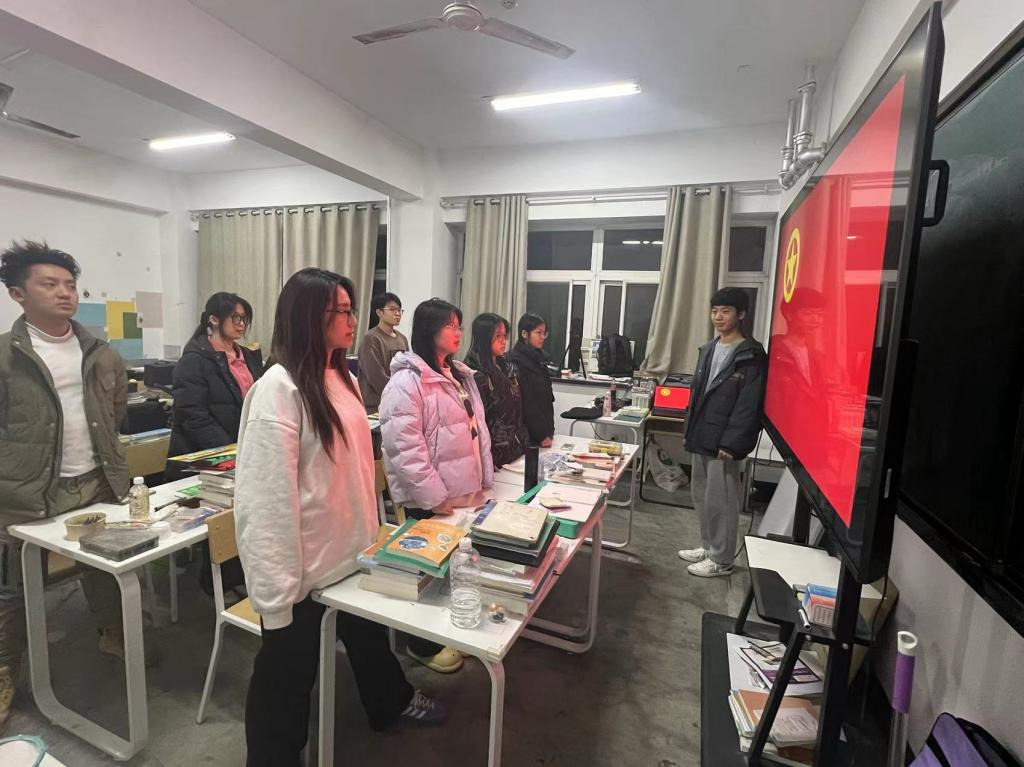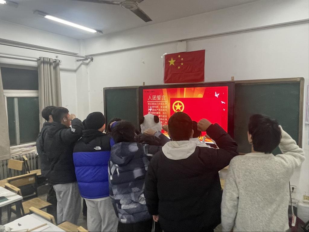 团支部书记带领全体团员重温入团誓词,以此提醒每位团员应牢记自己的身份和担当,时刻严格遵守组织纪律,强化组织观念和纪律意识,进一步增强团支部的向心力和凝聚力。