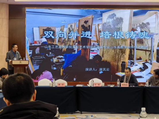 基础教学部主任谢其云参加此次展览和研讨会,并在在研讨会做“双向并进 培根铸魂--造型艺术学院中国画专业山水画教学和创作特点概述”的主旨演讲。