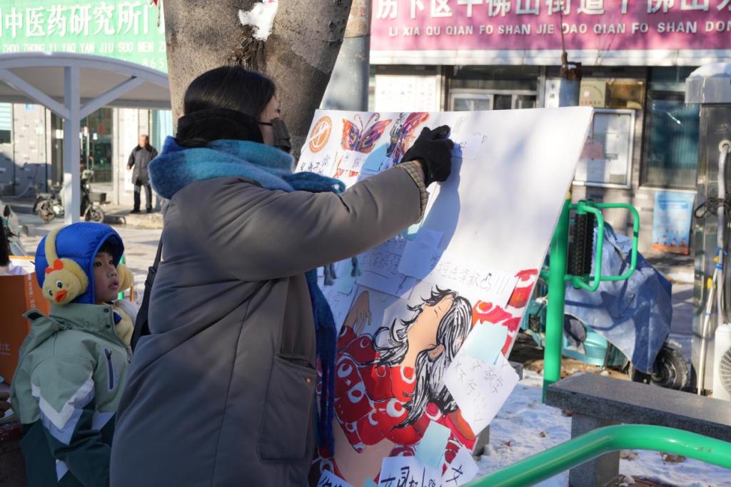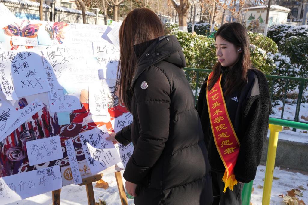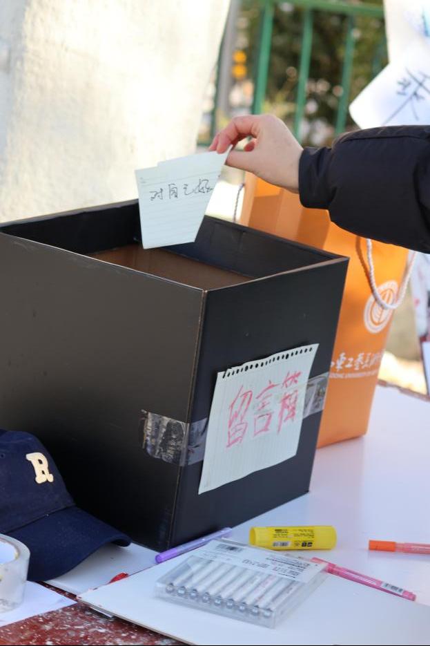 在此次活动中,实践团队成员为大家精心准备了爱心贴纸,借此机会让大家在贴纸上书写下积极向上的温馨寄语,为城市注入正能量。在大家的共同努力下,这些带着期许的贴纸在冬日暖阳的照耀下熠熠生辉,犹如点点星光,为我们带来温暖与希望。