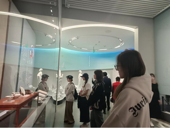 考察活动中,同学们参观了山东古代历史文化展品,包括陶器、瓷器、青铜器、玉石器、石刻、书法、绘画等,在全面了解山东古代文化发展脉络的基础上,结合自身专业对工艺美术类的陶器、瓷器进行了深度学习。随后,同学们参观了甲骨文化展、玉润生香展、明清服饰文化展、山东历史革命文物展、汉代画像艺术展等展览。最后,通过参观山东省博物馆的文创、数字化产品,同学们学习了如何将传统工艺与现代技艺、现代设计相结合,与实际生活和时尚需求相结合的设计理念。