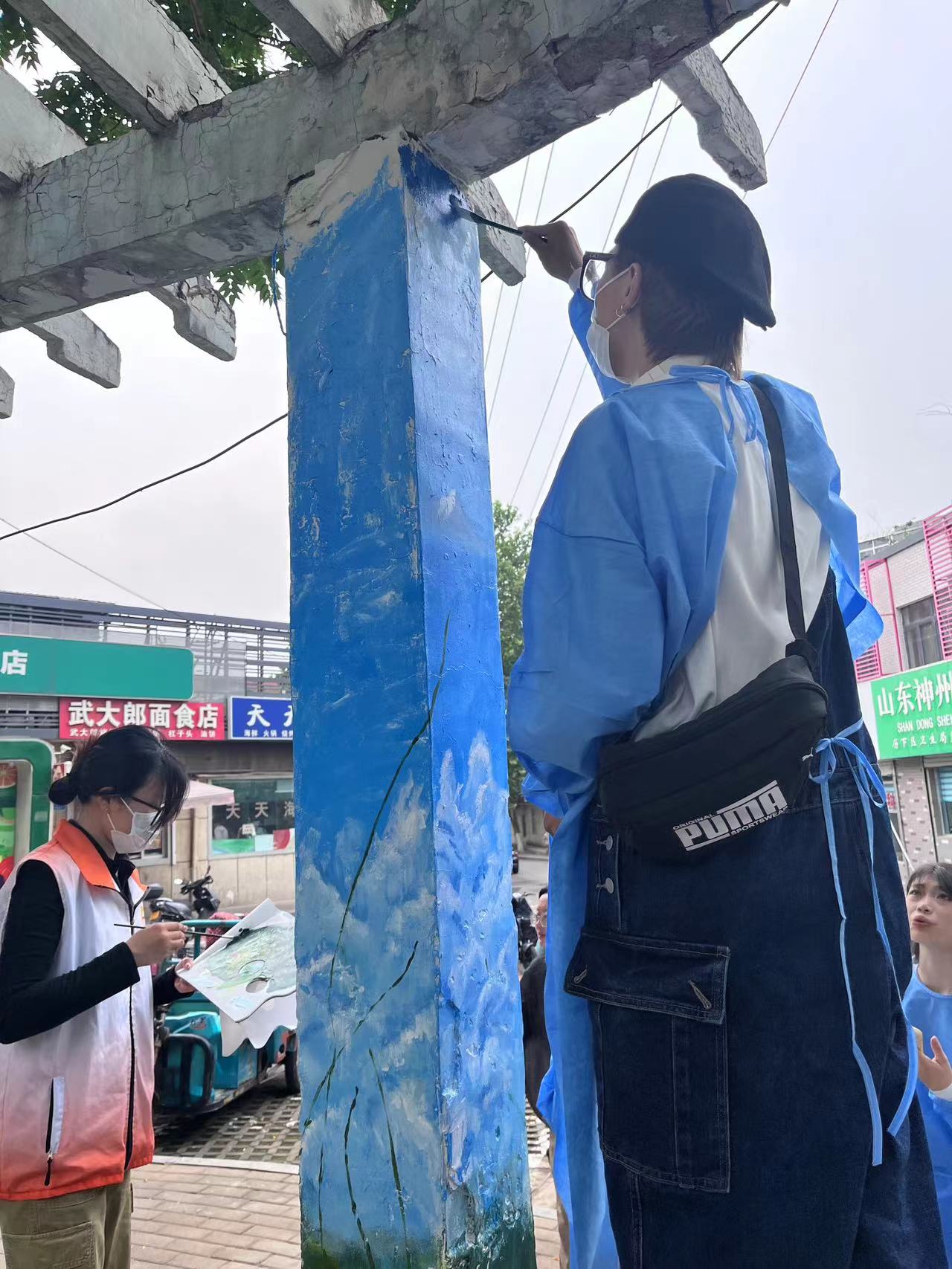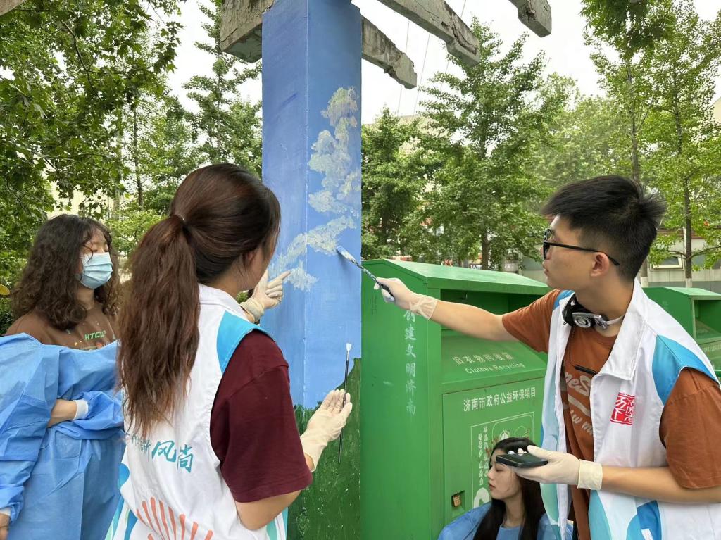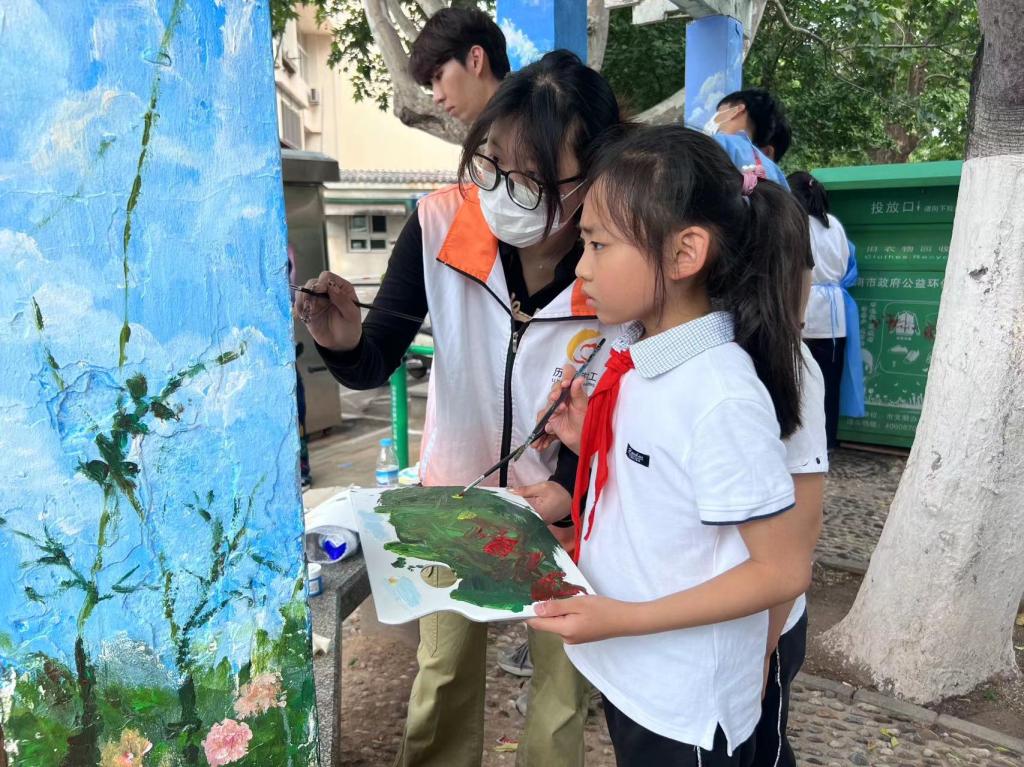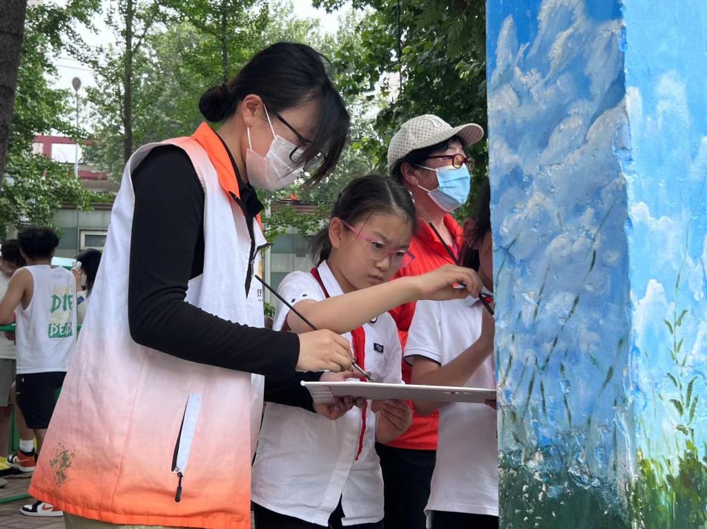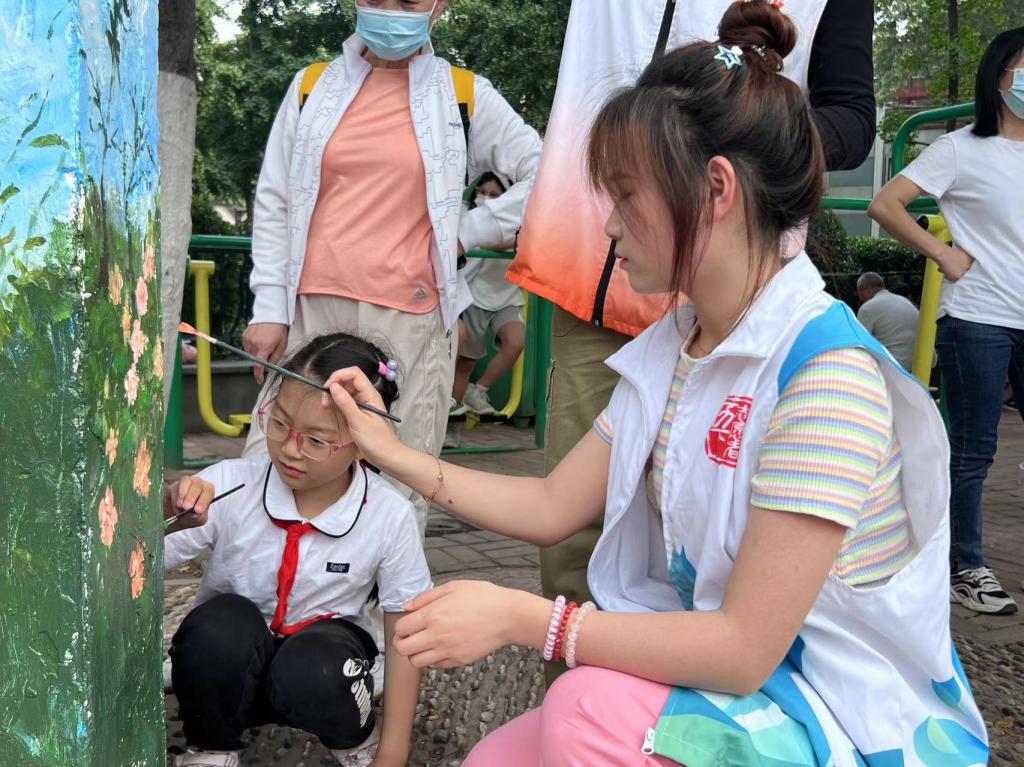 团员青年们热情高涨,共同完成墙面清理、刷底、起稿、弹线、上色等工作,期间有许多社区居民和小朋友前来观看,希望通过此次活动让更多的小朋友爱上绘画,遇见不一样的人生。