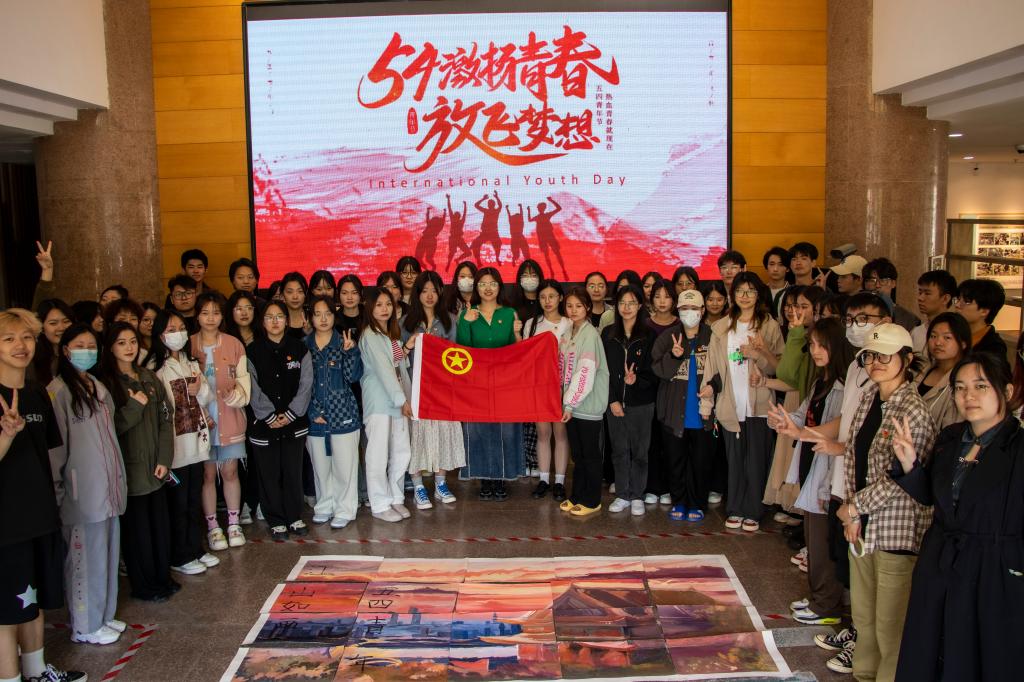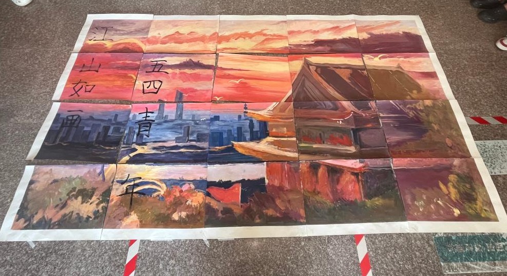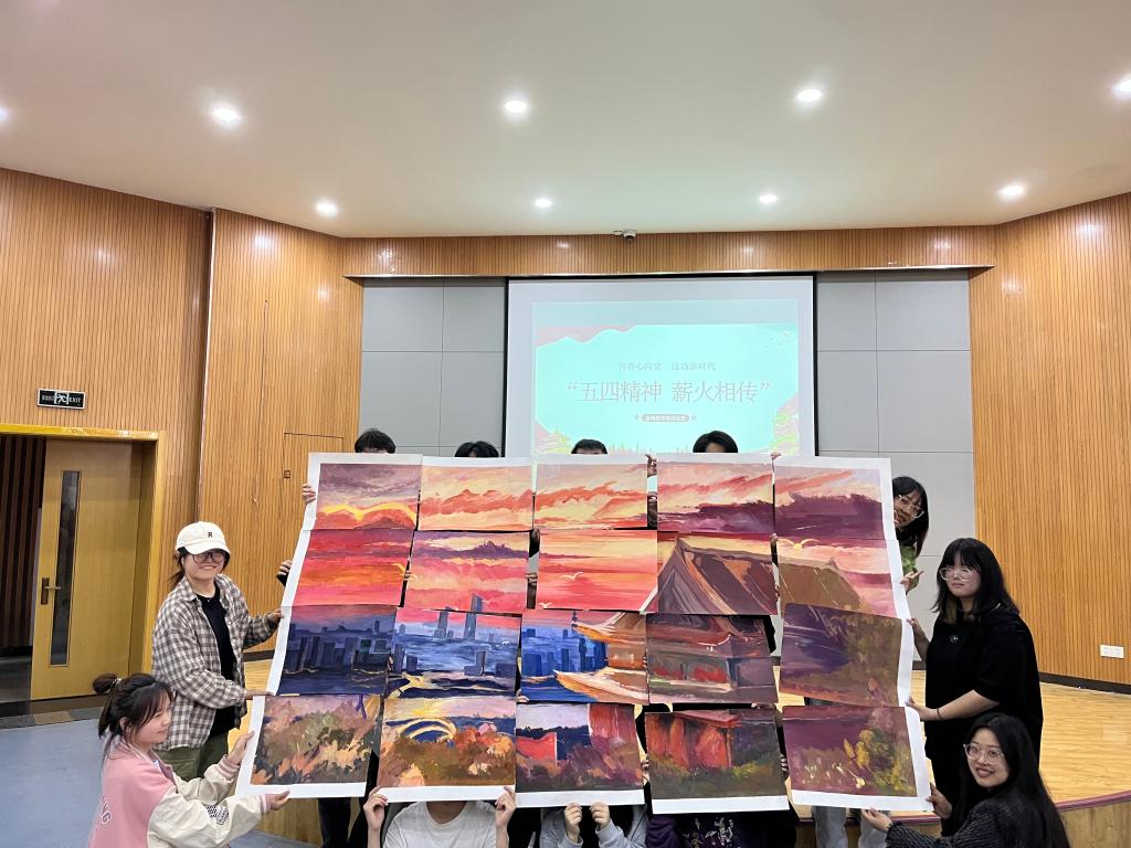 时逢五四青年节来临之际,为纪念“五四运动”,弘扬“爱国、进步、民主、科学”的五四精神,4月27日,基础教学部团总支在千佛山校区阶梯教室开展“‘绘聚’五四精神”主题活动。基础教学部2022级全体青年团员发挥专业特长,共同参与作品绘制,以盛世美景,迎接五四青年节的到来!