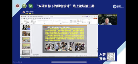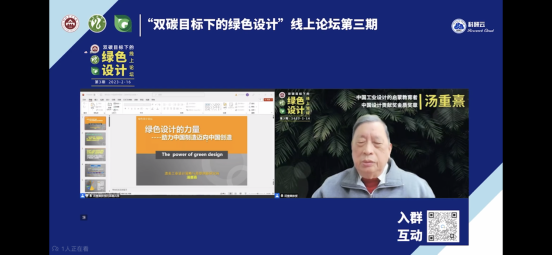 2023年4月4日晚6时30分,“通观”——基础教学部系列学术线上讲座第八十一期《绿色设计的力量——助力中国制造,迈向中国创造》顺利举办。本次讲座由广州大学艺术学院院长、广州大学工业设计研究所所长、中国工业设计协会常务理事汤重熹教授主讲。基础教学部全体学生认真观看了讲座。