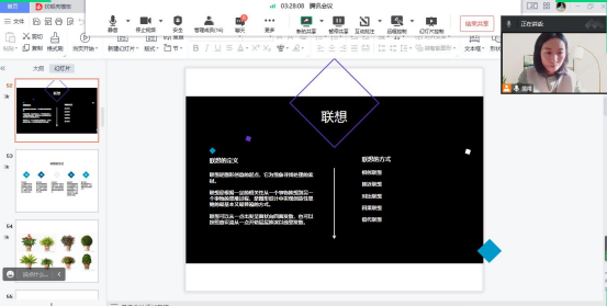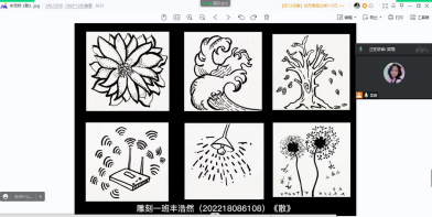 线上教学的主要问题和解决方法:学生对于创意思维方式联想中的意的联想、意与形的联想的概念和形式比较模糊,理解较为困难,针对这个问题进行着重讲解,并找了大量图片生动案例进行展示,辅助学生对意的联想概念的理解和感受。
