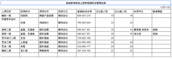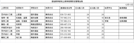 同时,每日制作基础教学部线上教学疫情防控管理台账,并要求授课教师每日提交授课过程照片,每周提交线上教学总结,及时掌握线上教学情况。
