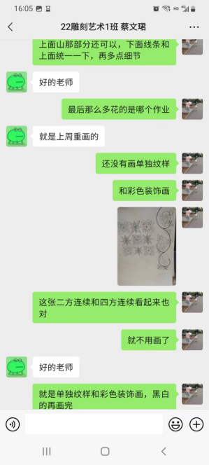 教师伏倩倩为2022级雕刻艺术设计1班授课《陶瓷装饰》,利用雨课堂、腾讯会议等形式在线授课。
