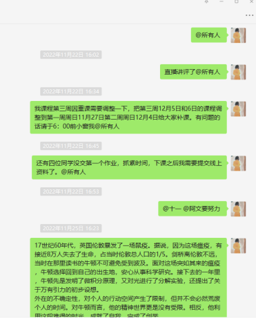 课下时间继续用微信进行沟通。随时解决同学们学习及作业方面的问题。